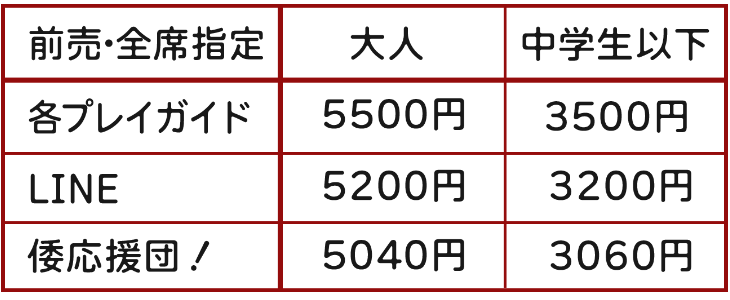 全席指定・前売(当日500円UP) 3歳以下のお子様はご入場できません。